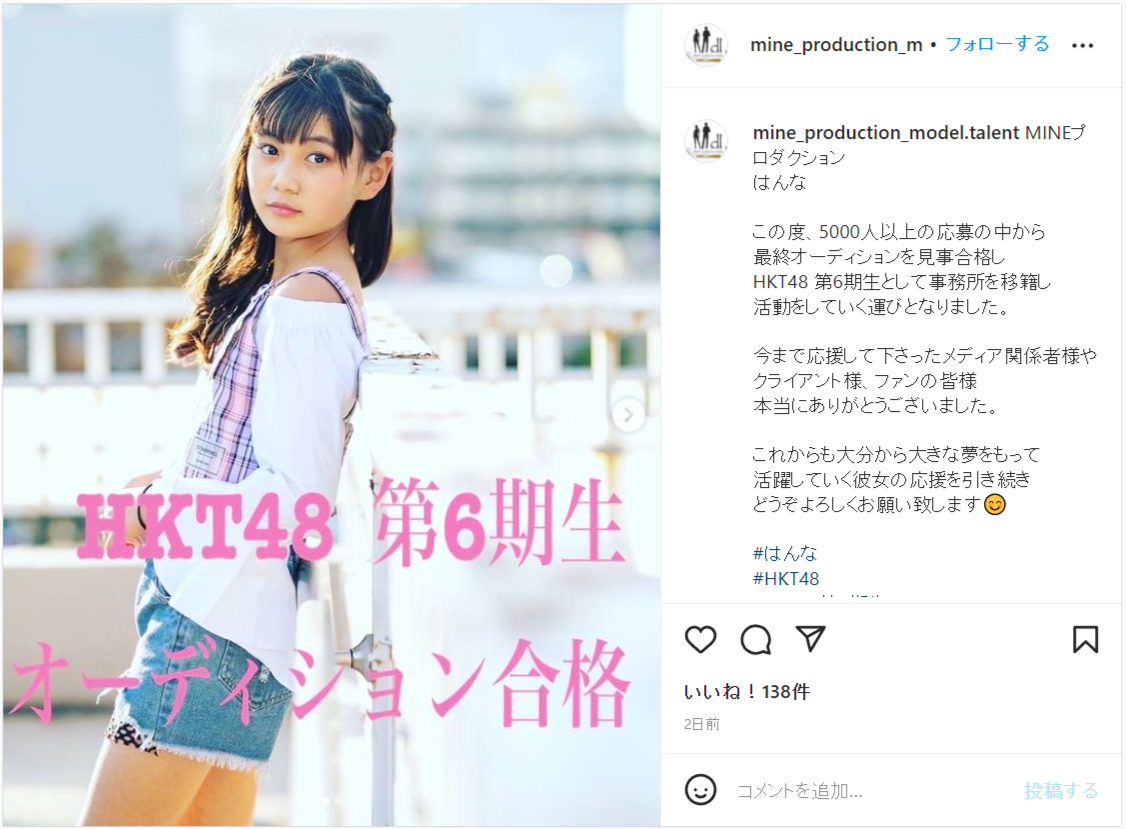 HKT48 第6期生として事務所を移籍し