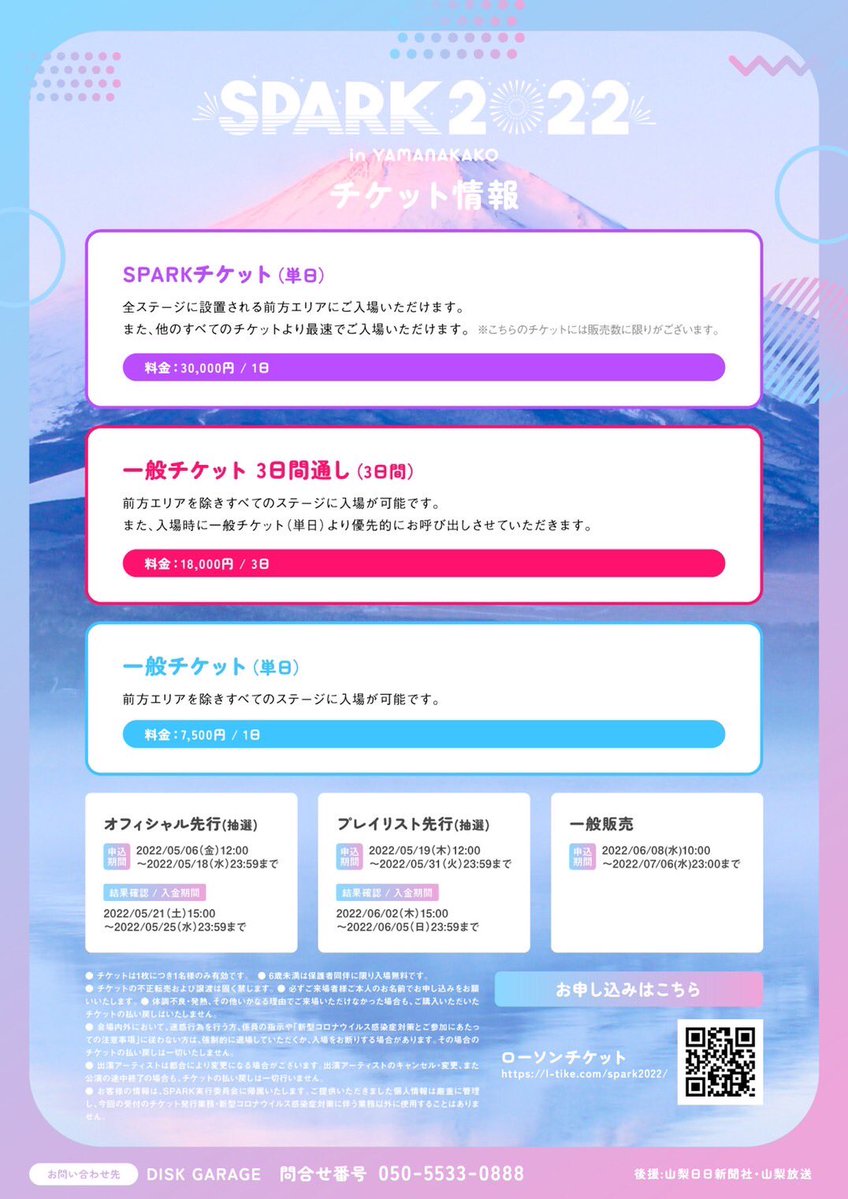 【お知らせ】SPARK 2022 in YAMANAKAKOチケット詳細