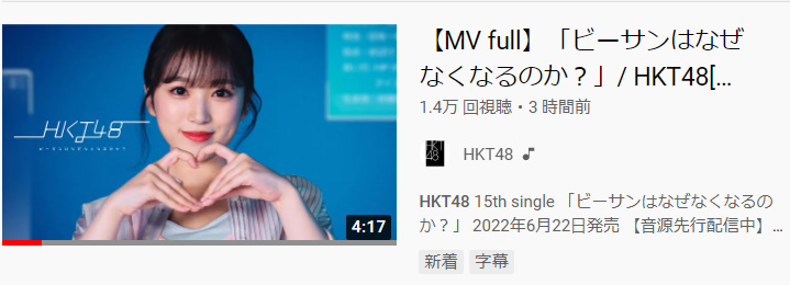 【アホスレ】HKT48の新曲MVが公開3時間で1.4万再生なんだけど・・・