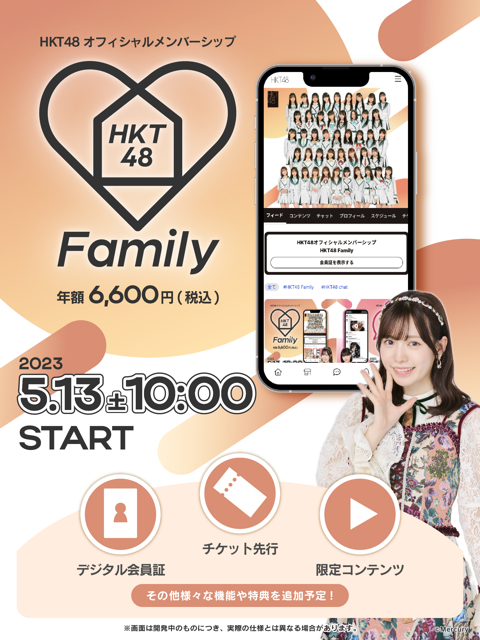 2023年5月13日(土)10:00より、HKT48 オフィシャルメンバーシップ「HKT48 Family」とHKT48メンバー個別チャットサービス「HKT48 chat」を開始いたします。