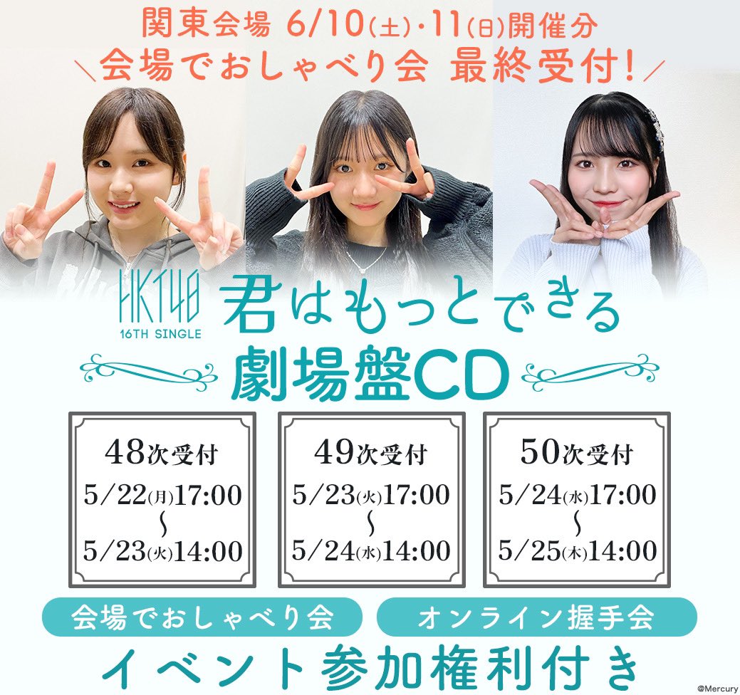 【お知らせ】「君はもっとできる」劇場盤発売記念「会場でおしゃべり会」「オンライン握手会」<第48~50次受付>