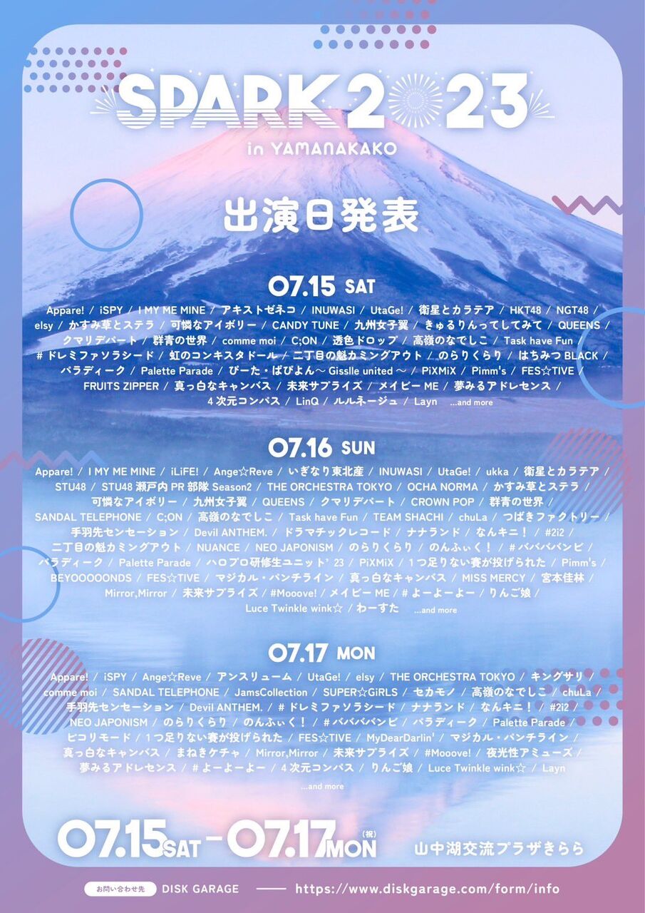 【お知らせ】『SPARK 2023 in YAMANAKAKO』 HKT48 は初日 CANDYTUNE FRUITSZIPPER と同じ日