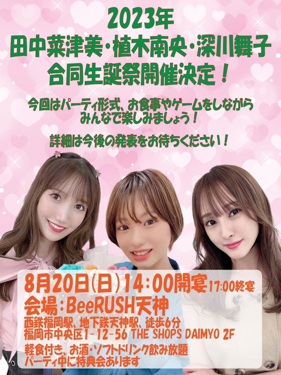 【お知らせ】田中菜津美・深川舞子・植木南央 合同生誕祭