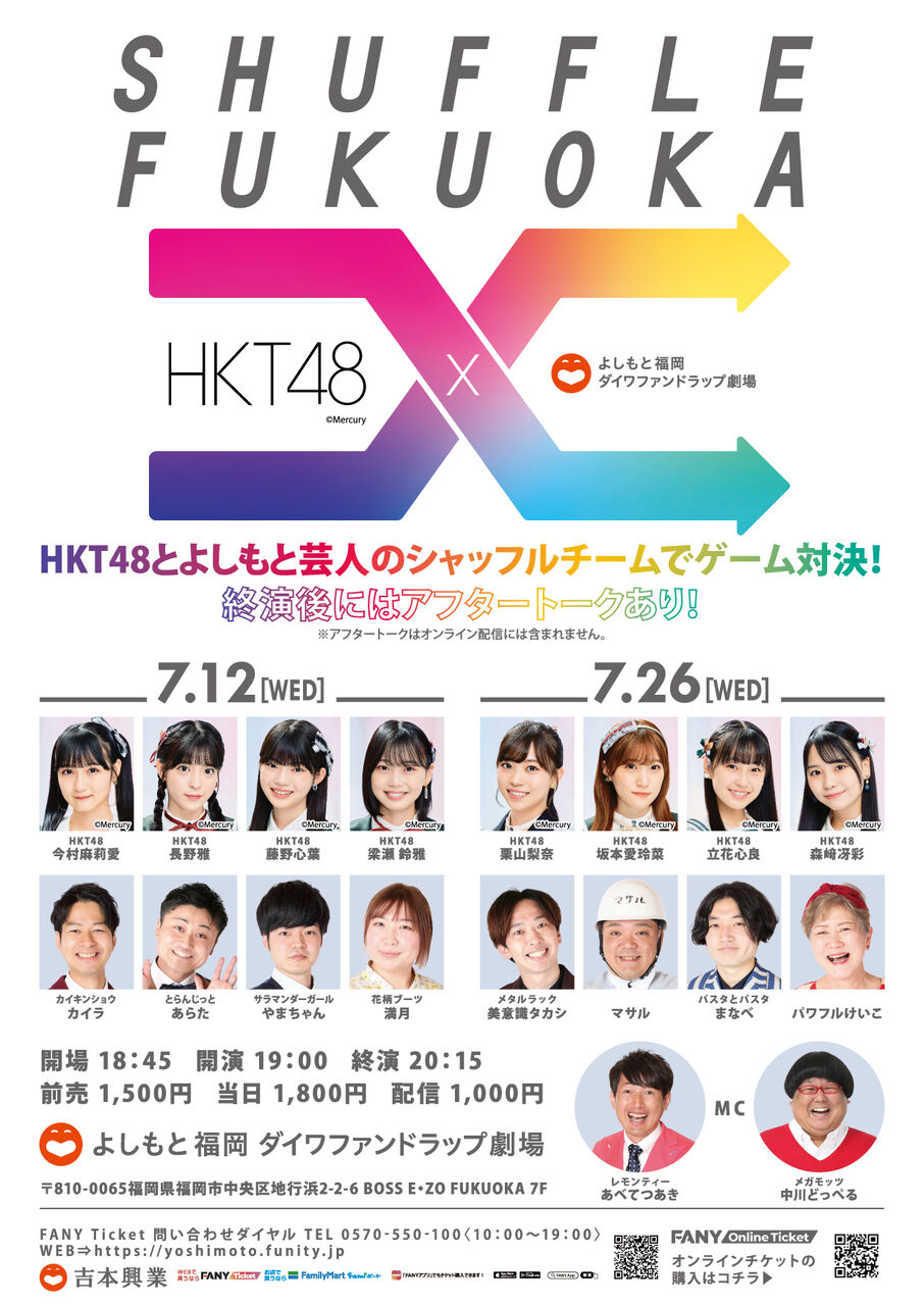 【お知らせ】SHUFFLE FUKUOKA 7月12日・26日メンバー