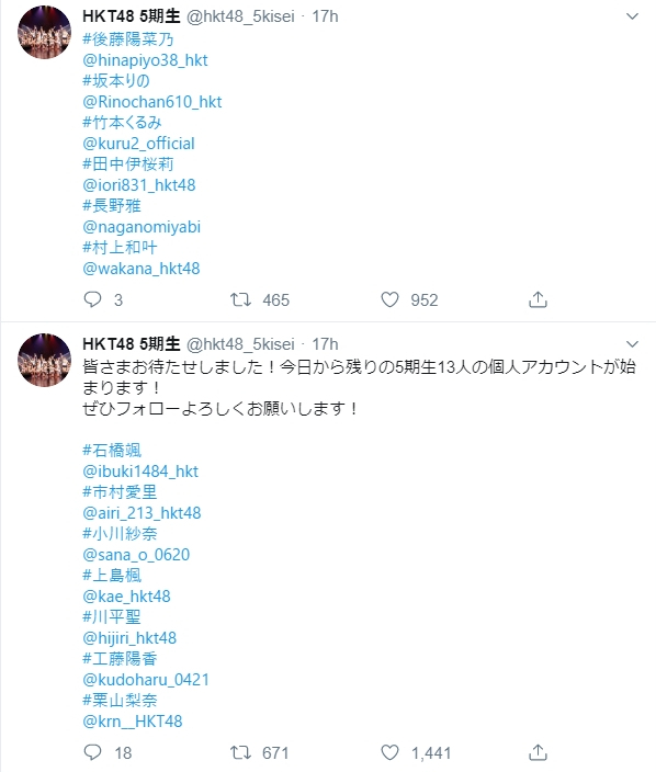 【朗報】HKT48・5期生の個人Twitter開始!!!