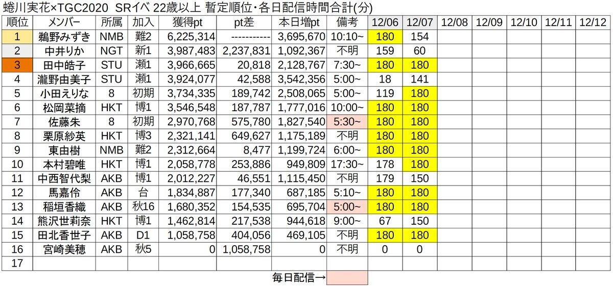 【蜷川実花イベント】22歳以上枠2日目終了時点 でのポイントまとめてくれたよー