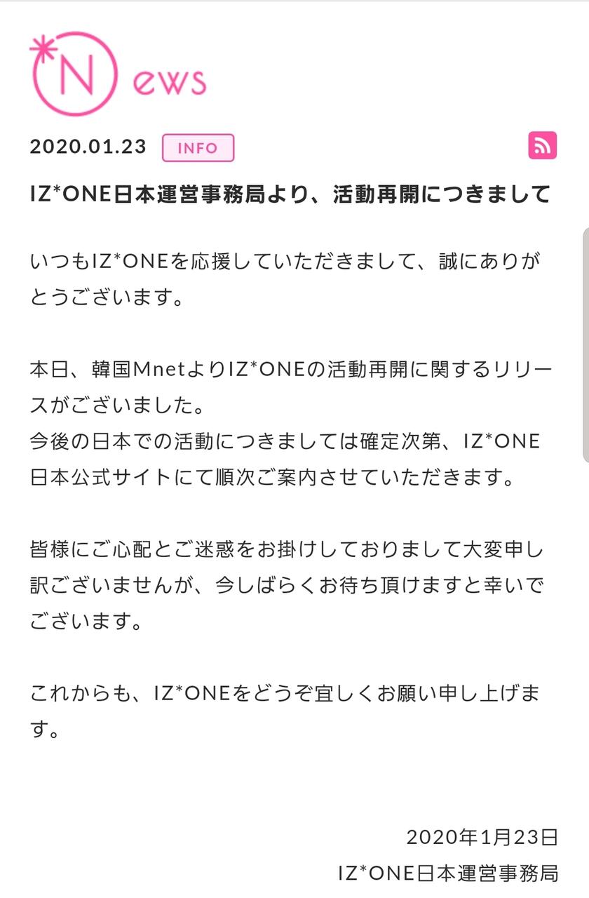 【お知らせ】IZ*ONE活動再開 の目途が立つ