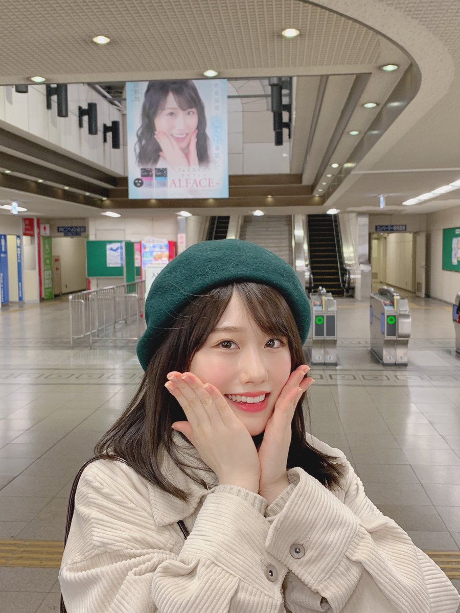 【小田彩加】平和通駅の改札口にて同じポーズ