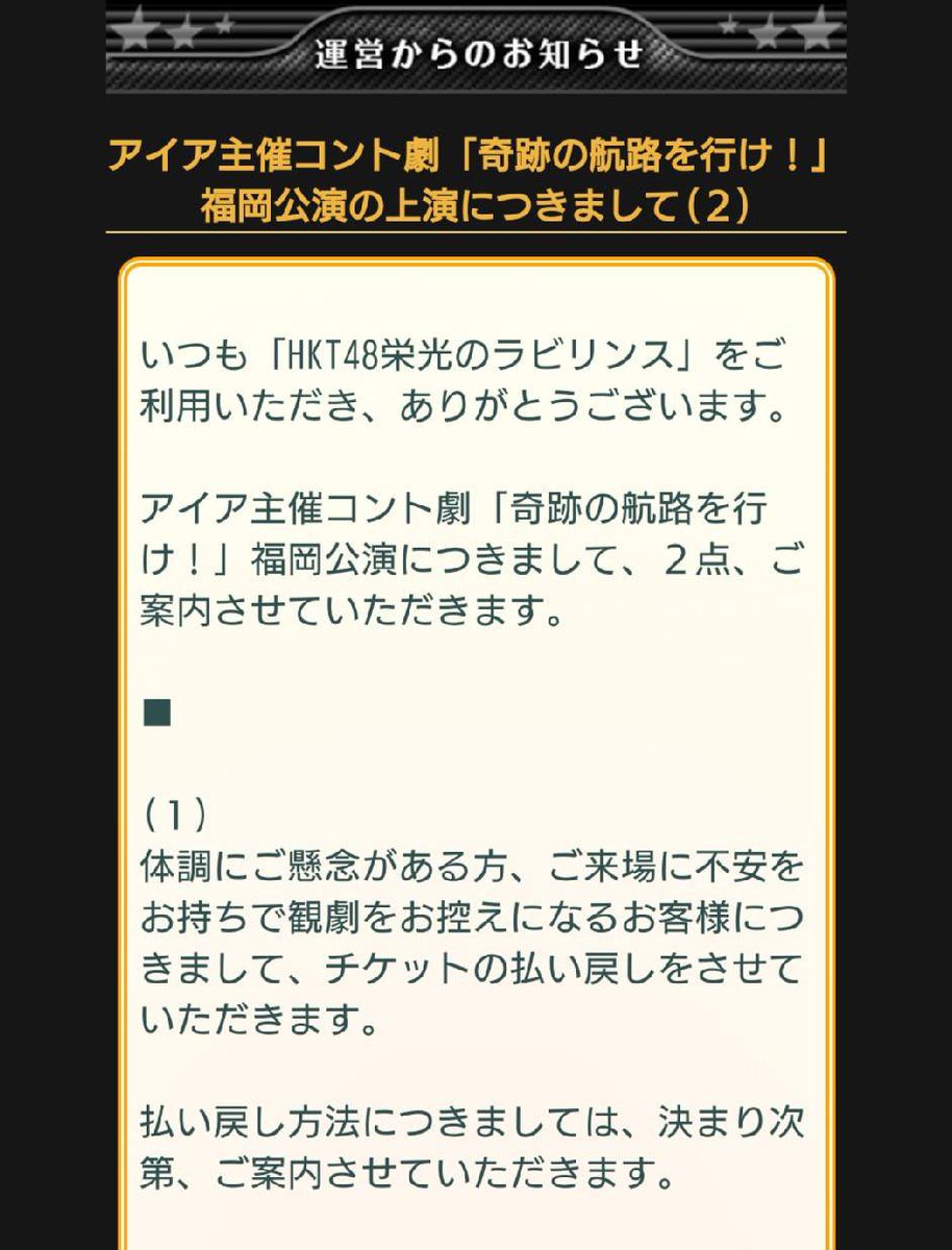 【お知らせ】アイア主催コント劇「奇跡の航路を行け!」福岡公演 検温と来場出来ない人への払い戻しを決定