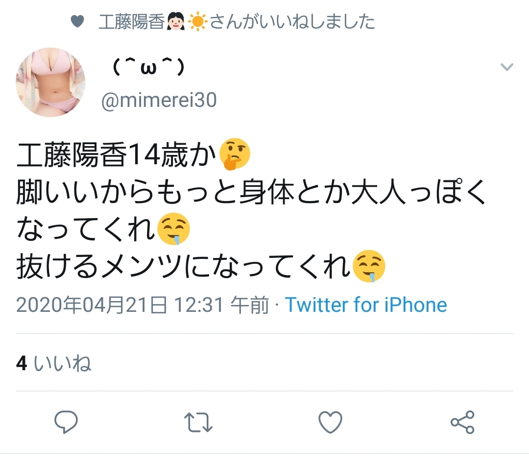 【悲報】HKT48工藤陽香さんがとんでもないツイに「いいね」してしまうwww